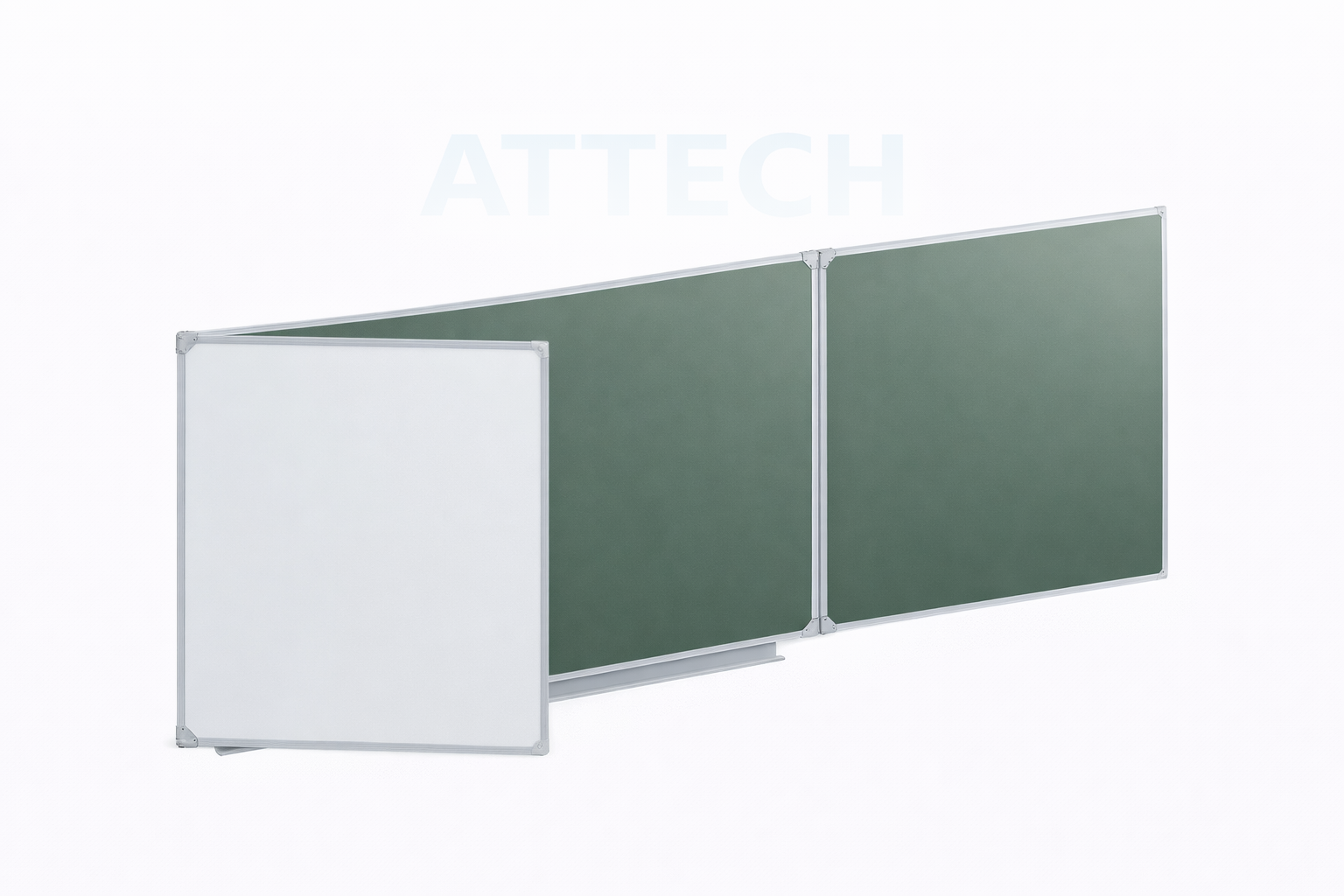 - Доска настенная с 5-тью рабочими поверхностями, предназначена для письма мелом и маркером.