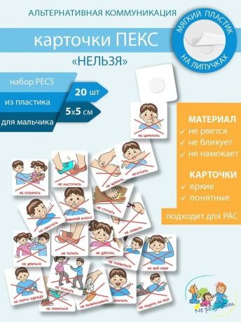 Карточки PECS - система альтернативной коммуникации (общения) для особенных детей, детей с РАС (аутизм), помогают неговорящим детям адаптироваться к окружающему миру, также используются в качестве развивающего пособия, специалистами в инклюзивных классах. Карточки изготовлены из антивандального суперпрочного пластика, полностью исключена возможность разрывов, поломок, расслоения. Карточки PECS безопасны, так как не имеют острых углов. Карточки выполнены в красочной цветовой гамме с понятными изображениями без бликов. Карточки легко моются, при необходимости.