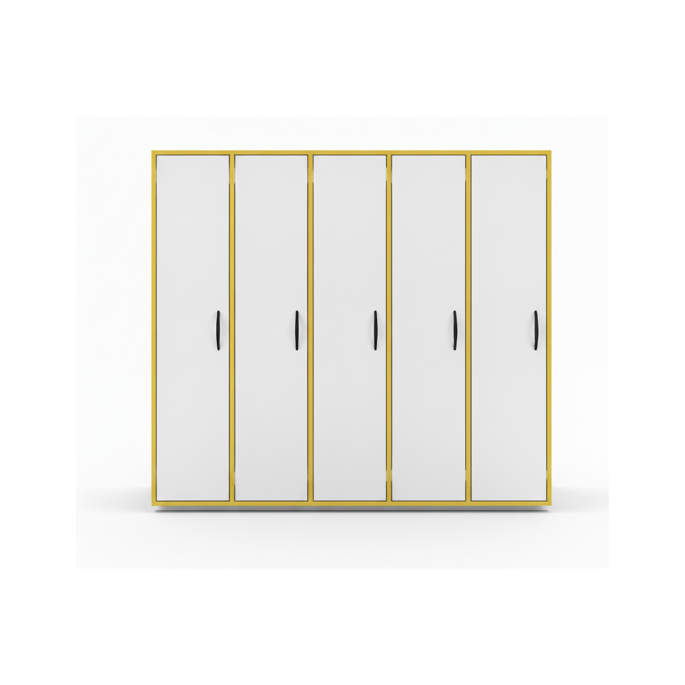 - 5 распашными дверцами — по одной на каждую секцию.