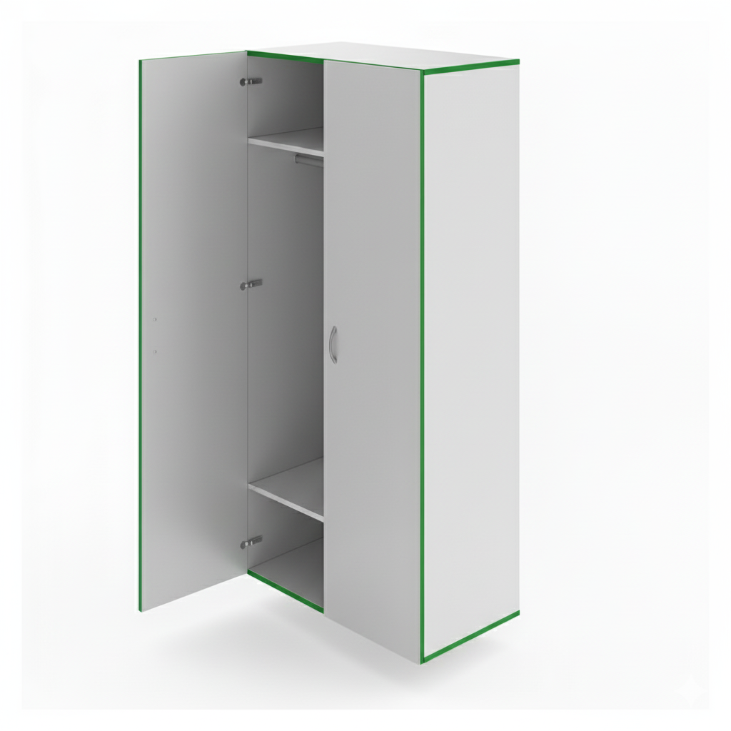 Конструкция шкафа разделена на три функциональные секции: Верхняя секция — для хранения головных уборов и аксессуаров. Средняя секция — оснащена штангой для вешалок, предназначенной для размещения верхней одежды. Нижняя секция — для аккуратного хранения обуви. Шкаф оборудован распашными дверями с доводчиками, что обеспечивает плавное, бесшумное закрывание и предотвращает хлопание дверей при эксплуатации. Надёжная конструкция рассчитана на интенсивное использование в школах, офисах, спорткомплексах и гардеробных. Для ограничения доступа корпус шкафа оснащён замком. |